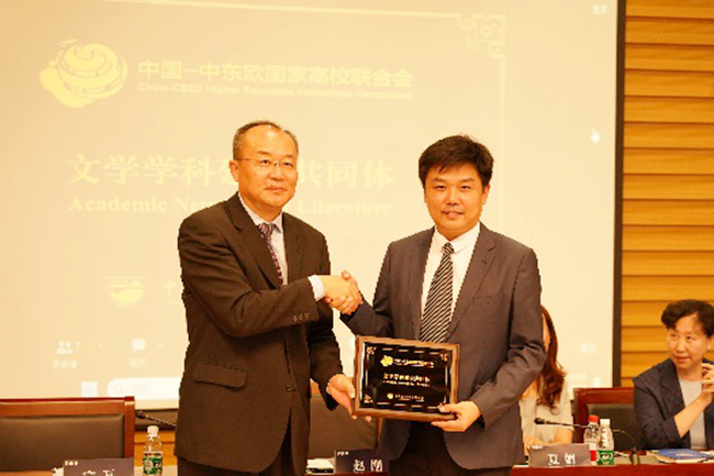 在中国-中东欧国家高校联合会文学学科建设共同体启动仪式上,宗瓦向赵刚授牌。宗瓦对共同体的成立表示了衷心的祝贺。他表示,文学学科共同体建设对于推进中国与中东欧国家民心相通,服务“一带一路”建设,具有重要意义。中国教育国际交流协会将持续支持共同体工作。