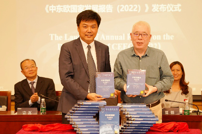 大会随后举行了《中东欧国家发展报告(2022)》蓝皮书发布会。社会科学文献出版社总编辑杨群与蓝皮书主编赵刚共同为皮书揭幕,随后北外中东欧研究中心副主任、蓝皮书副主编林温霜发言,对《中东欧国家发展报告》蓝皮书的发展历程进行了回顾,向对蓝皮书编写提供了帮助的各位专家学者表示感谢。